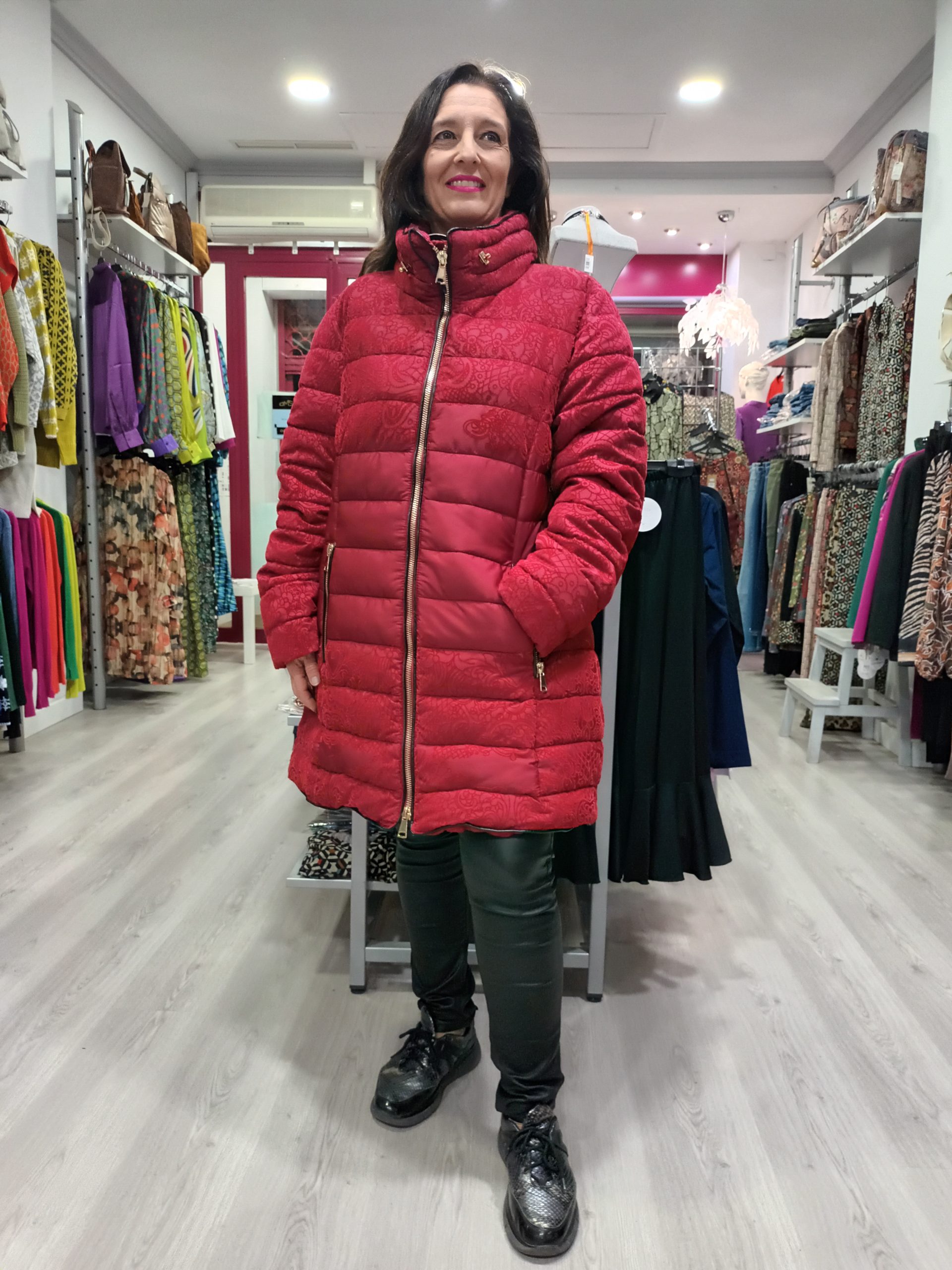 Abrigo plumífero rojo