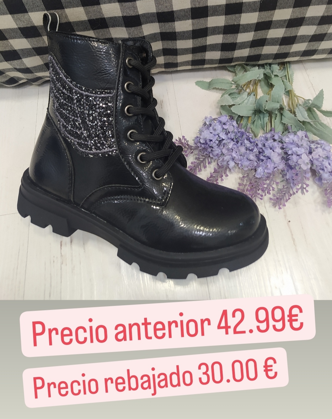 Bota negra cordones